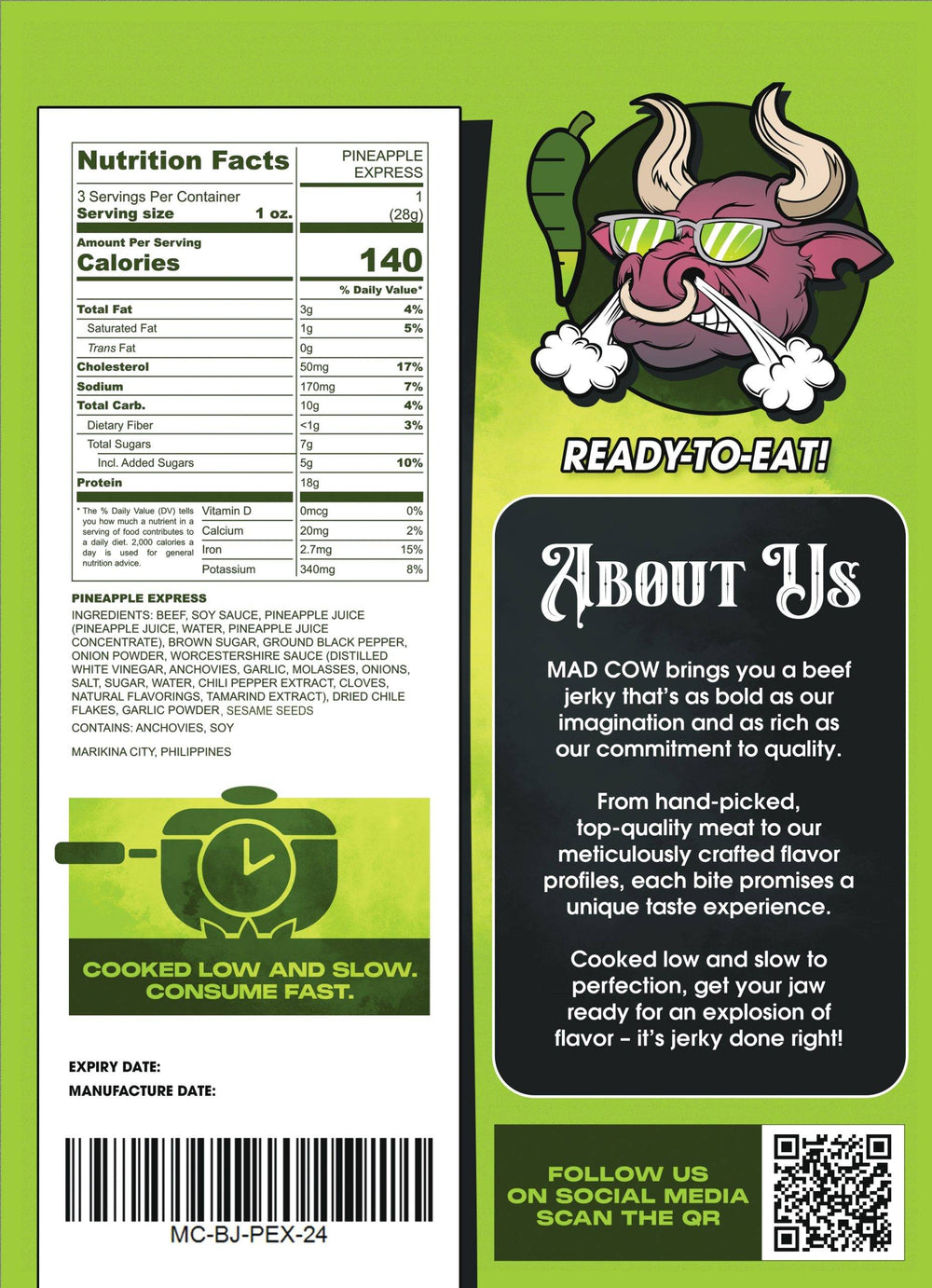 MAD COW - BEEF JERKY PINEAPPLE EXPRESS 80g (Best By: 11/18/25)