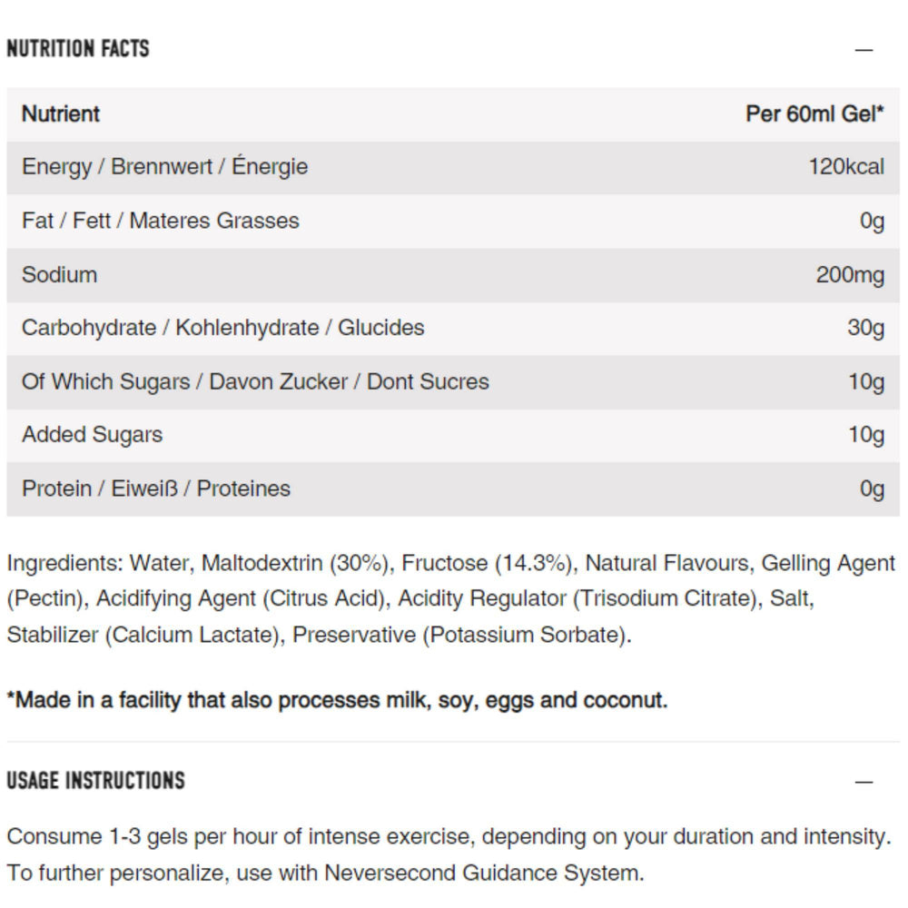 Nutrition values | per 100ml | per gel (60ml) |