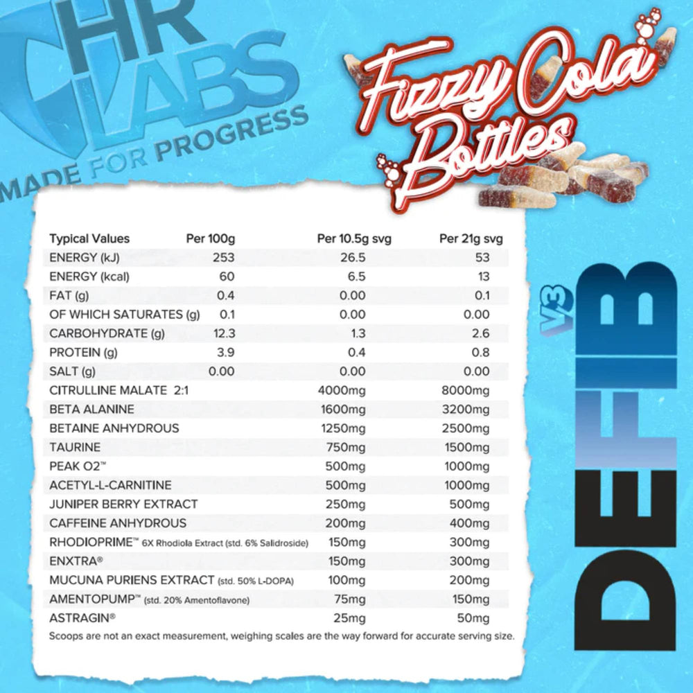 HR LABS - Defib V3 FIZZY COLA BOTTLES 420g (Slightly Clumped)