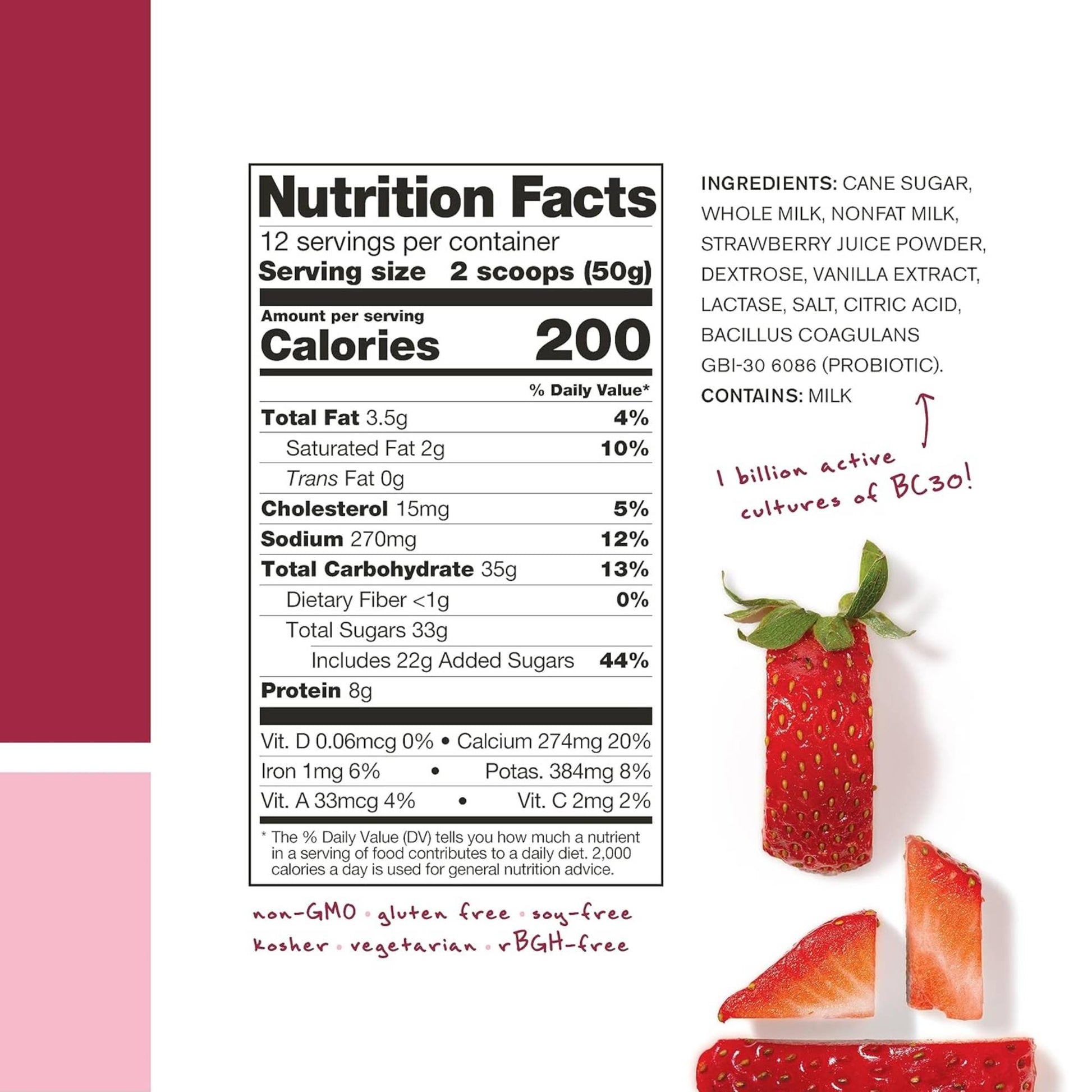 An electrolyte profile that matches what’s lost in sweat for improved hydration. ingredientscane sugar, dextrose, pea protein, medium chain triglycerides (derived from coconut), cocoa powder, rice protein, cocoa extract, gum acacia, salt, vanilla extract, Bacillus coagulans GBI-30 6086 (probiotic) non-GMO, kosher, vegan, gluten free, soy free, rBGH-free+Probiotic BC30: 1 billion active cultures per serving. BC30 supports an overall healthy digestive system, healthy immune system, and enhances protein utilization. Not all probiotic strains are the same - BC30 delivers live cells 10 times more effectively than common probiotic yogurts.