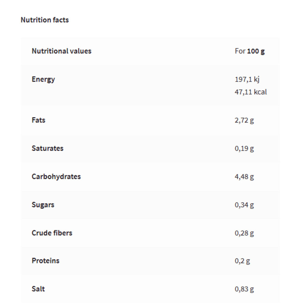 water, modified corn starch, vegetable oil (rapeseed), lemon juice, salt, MUSTARD (water, MUSTARD seed, vinegar, spices), onion, emusifier: E473, natural aroma, vinegar, pepper, preservatives (potassium sorbate, sodium benzoate), acidulant: citric acid, chive, parsley, thickener: xanthan gum, sweetener: sucralose