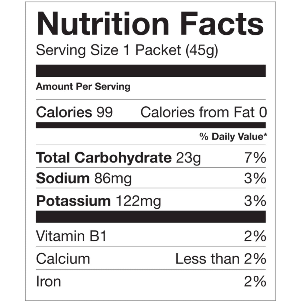 AMMO - We believe that food starts in the kitchen, not in the lab. That’s why AMMO was created in the kitchen, then lab tested, to make sure it gives the right energy athletes need. SOLAR DRIED BANANA SYRUP - Fast absorption carbohydrate high in potassium and magnesium for mineral replenishment, a pack of AMMO equals eating two bananas. COCONUT NECTAR CRYSTAL - Sustained release type of carbohydrate to provide steady energy throughout your exercise and also rich in sodium, potassium and magnesium. MILLED CHIA SEED - Superfood that stabilizes carbohydrate absorption to control sugar spike and also packed with Omega 3 and essential amino acids. FLEUR DE SEL (SEA SALT) - Purest form of salt with high mineral complexity. Replenishes sodium chloride and essential electrolytes to maintain water balance in your body while exercising.