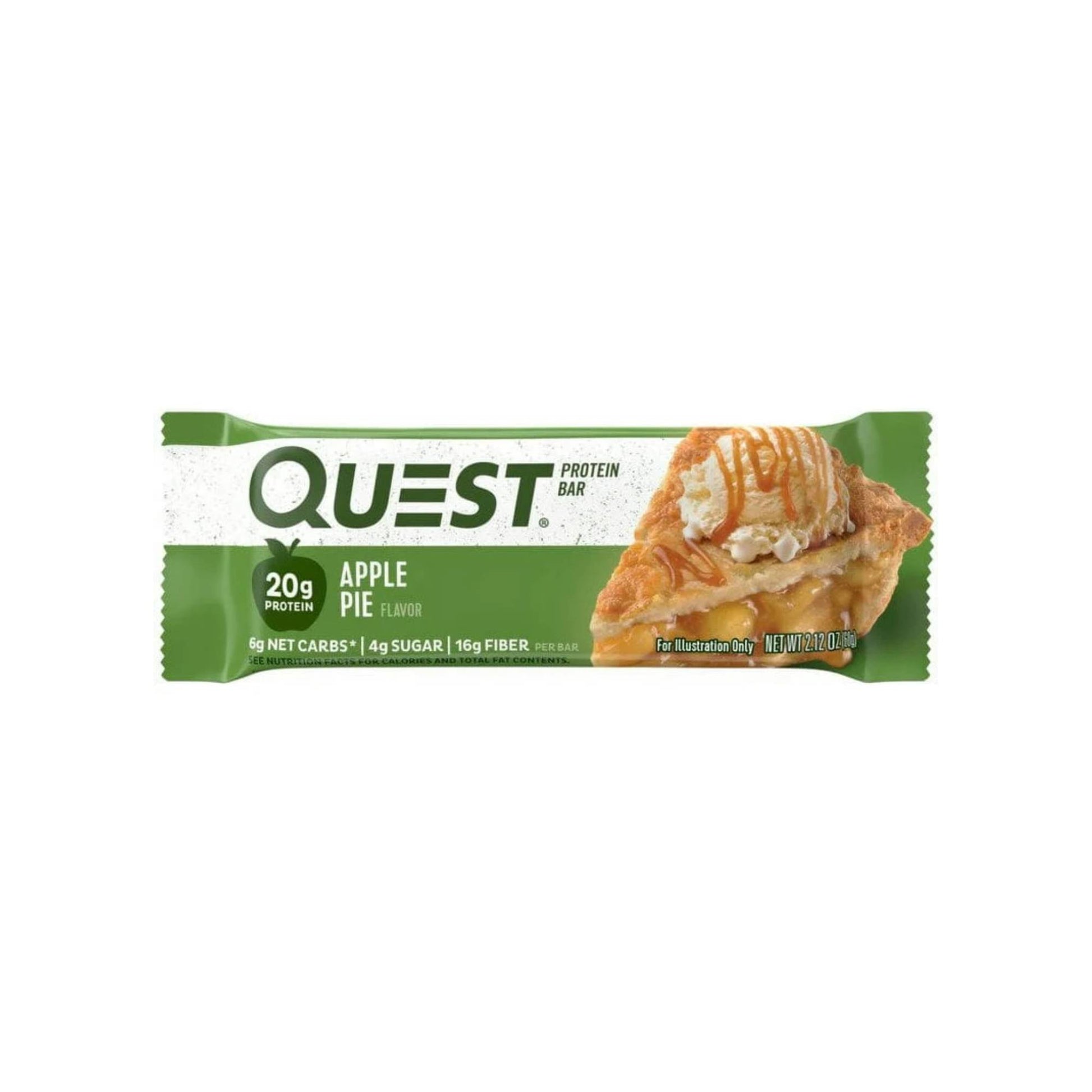 Quest™ Apple Pie Protein Bars provide the flavor of dried apple, with toffee and graham flavored pieces throughout. These delicious bars are topped with a white-chocolate flavored drizzle and have 20g of protein, 4g of net carbs and 2g of sugar per serving*.